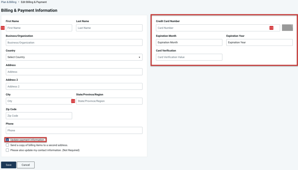3. On the Billing & Payment Information page you can update: Billing & Payment Information