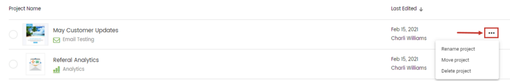 Each project will be listed by Last Edited, and you can see a thumbnail of the project, the name, and project type.